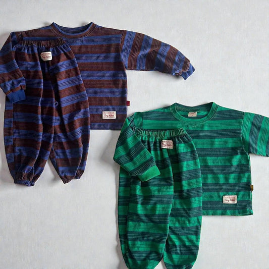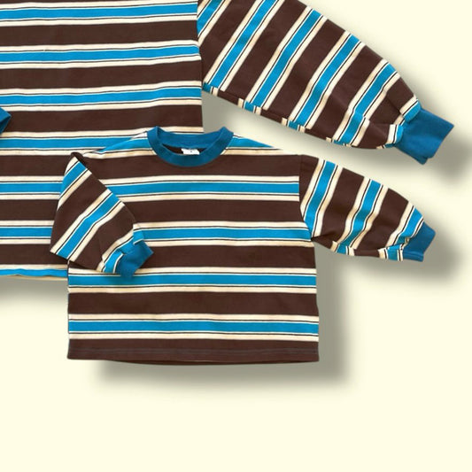 At Noon Toddler W25 Oversized Brushed Cotton Stripe Sweatshirt (1-6y) - Sky Brown