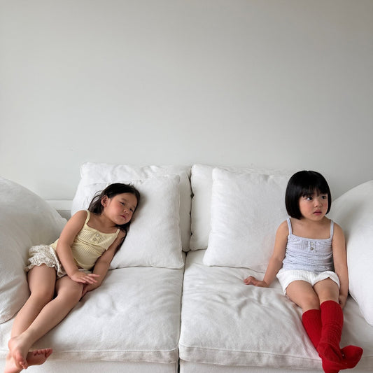 • Baby Toddler Double Red Line Socks (0-8y) - Beige - AT NOON STORE