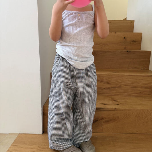 Adult SP26 Mixed Gingham Straight Pants - Blue