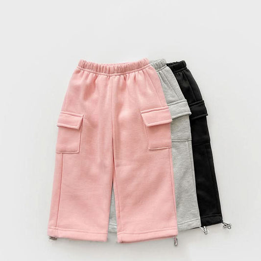 Kids Brushed Warm Fabric Cargo Adjustable Hem Jogger Pants (6-8y) - 3 Colors