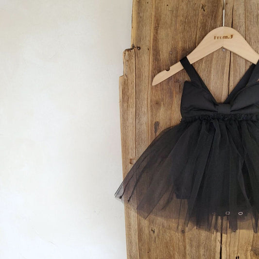Baby Sleeveless Bow Tutu Dress Romper (3-18m) - Black