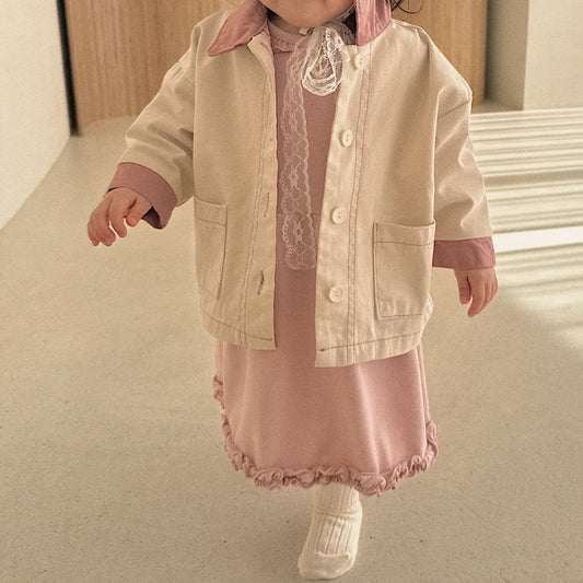 Baby Bella SP26 Front Pocket Contrast Collar Jacket (6m-4y) - Ivory