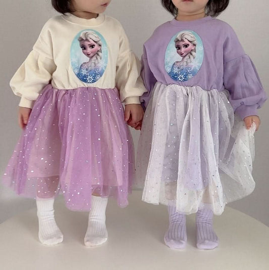 Toddler S25 Puff Sleeve Cotton Elsa Tulle Dress (15m-7y) - 2 Colors