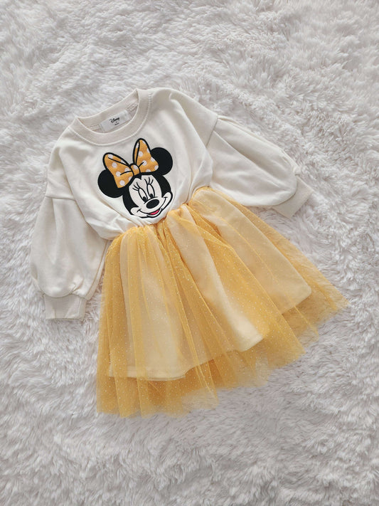 Toddler Puff Sleeve Soft Cotton Minnie Tulle Dress (15m-7y) - 2 Colors