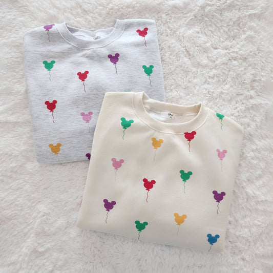 Adult Balloon Print Brushed Cotton Sweatshirt - Melange Grey