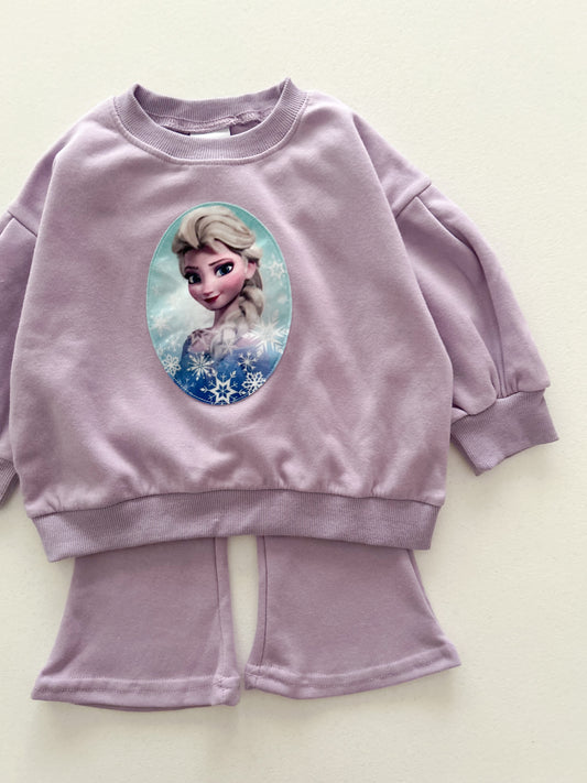 Toddler Elsa Patch Puff Long SleeveSweatshirt and Flare Pants Set (1-6y) - Lilac