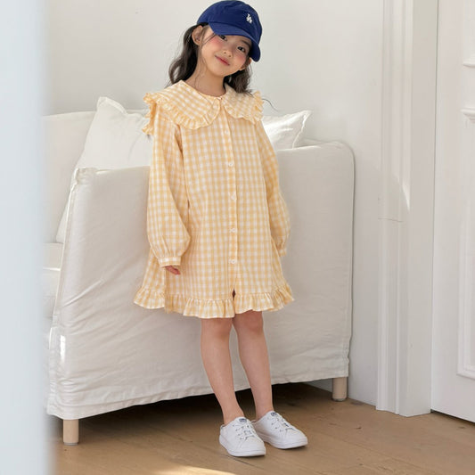 Toddler SP26 Gingham Frilled Peter Pan Collar Shirt Dress (2-8y) - 2 Colors