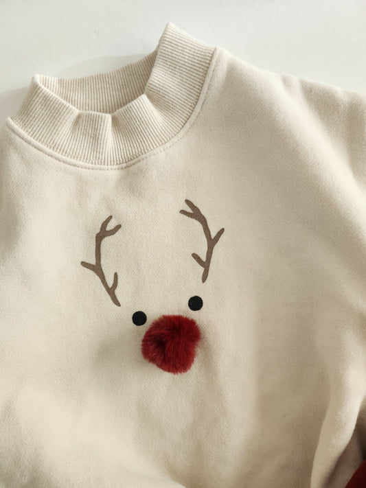 Baby Fleece-Lined Reindeer Sweatshirt Romper and Bonnet Set (3-18m) - Red