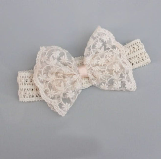 Baby Miso Lace Bow Headband (3-18m) - Ivory