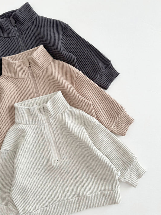 [At Noon Original Design] Kids Half-Zip Waffle Top (6m-7y) - 3 Colors