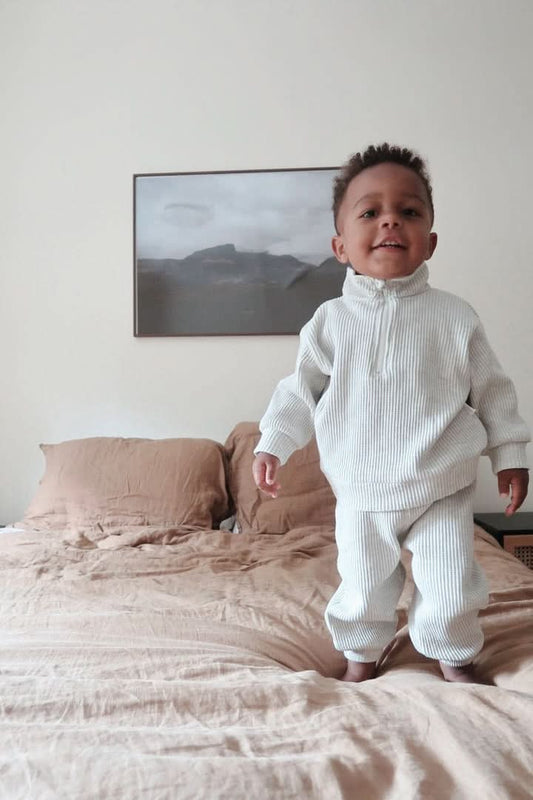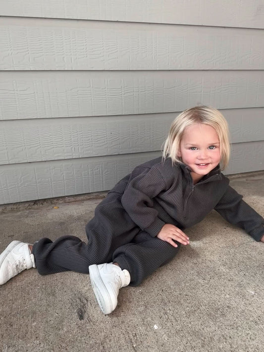 [At Noon Original Design] Kids Half-Zip Waffle Top and Jogger Pants Set (6m-7y) - 3 Colors