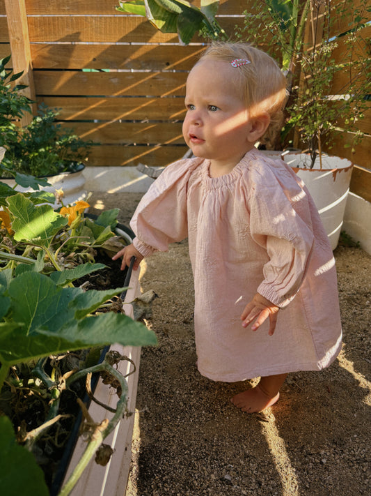 [At Noon Original Design] Toddler Bow Embroidery Gauze Cotton Dress (1-6y) - 2 Colors
