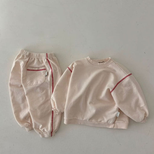 Toddler Land S25 Contrast Shoulder Stitch Long Sleeve Sweatshirt and Jogger Pants (1-6y) - 3 Colors