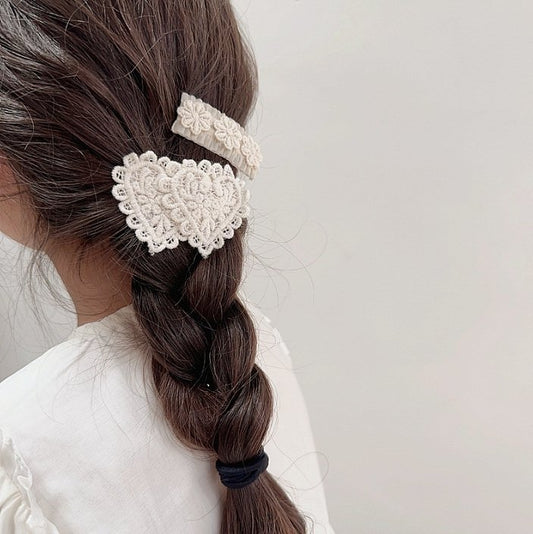 Girls Crochet Hair Clips (2pk) - Heart Set