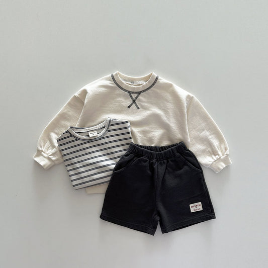 Toddler Long Sleeve Sweatshirt, Short Sleeve Stripe Tee and Shorts 3 Piece Set (12m-10y) - 2 Colors
