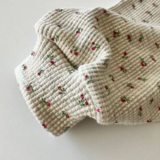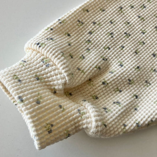 Girls Floral Print 2 Piece Waffle Set (Sweatshirt & Pull On Pants) (2-8y) - Cream