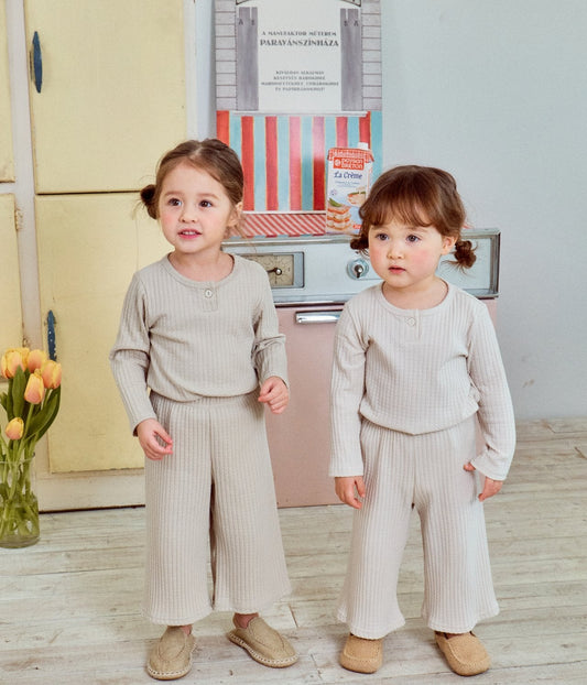 Toddler S25 Ribbed Pointelle Long Sleeve Top and Wide Pants Set (1-7y) - 2 Colors