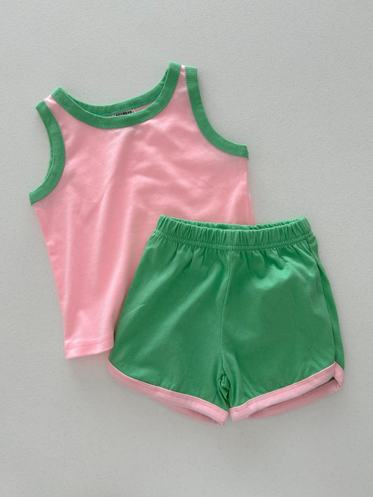 Kids Soy SS25 Contrast Trim Sleeveless Top and Shorts Set (1-6y) - 2 Colors