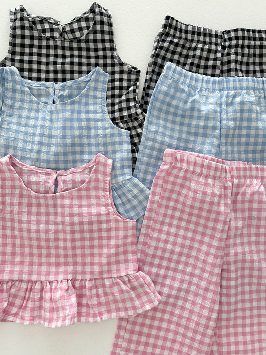 Kids Soy SS25 Gingham Sleeveless Peplum Top and Wide Pants Set (1-6y) - 3 Colors