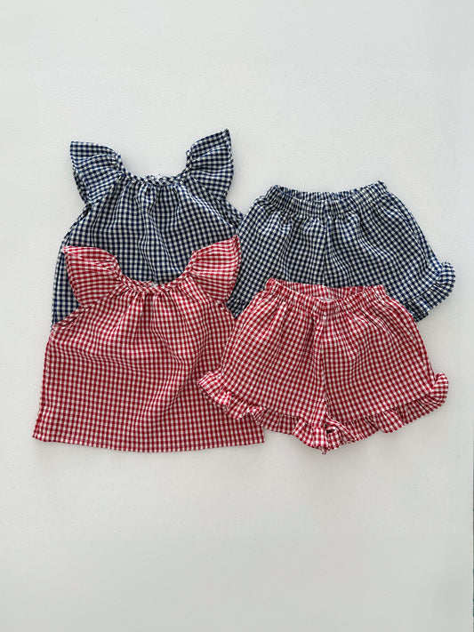 Kids Soy SS25 Gingham Ruffle Sleeves Top and Ruffle Hem Shorts Set (1-6y) - 2 Colors