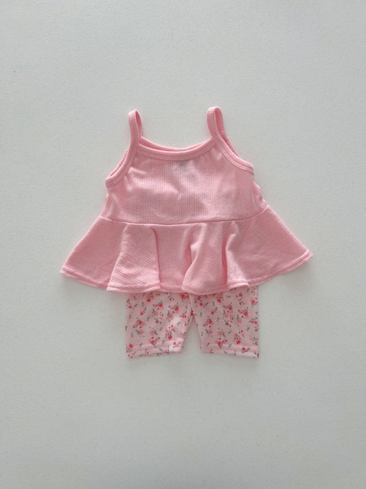 Kids Soy SS25 Peplum Cami and Floral Biker Shorts Set (1-6y) - Pink