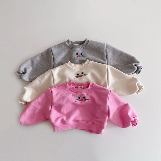 Toddler Cat Face Embroidery Cropped Sweatshirt (1-6y) - 3 Colors
