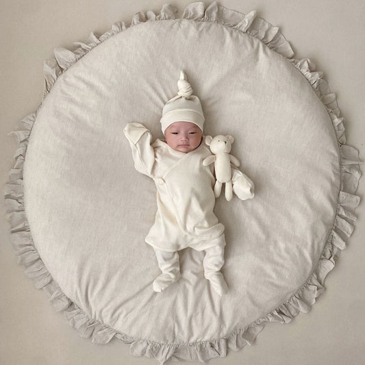 Newborn 2 Piece Organic Cotton Top and Beanie Set (0-3m) - Ivory