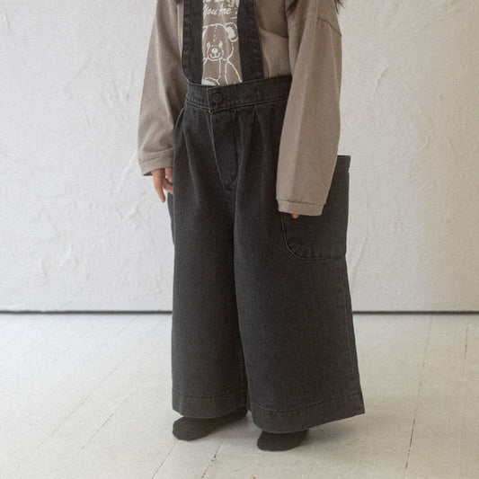 Toddler Wide Leg Denim Pants With Detachable Suspender (1-6y) - 2 Colors