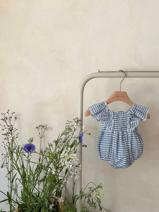Baby Monbebe Gingham Ruffle Short Sleeve Romper (3-24m) - 2 Colors