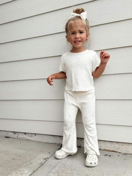 [At Noon Exclusive] Kids Cozy Waffle Lettuce-edge Flare Pants (1-7y) - Floral