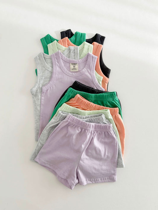 Kids Soy Summer Cotton Sleeveless Top & Shorts Set (1-6y) - 6 Colors
