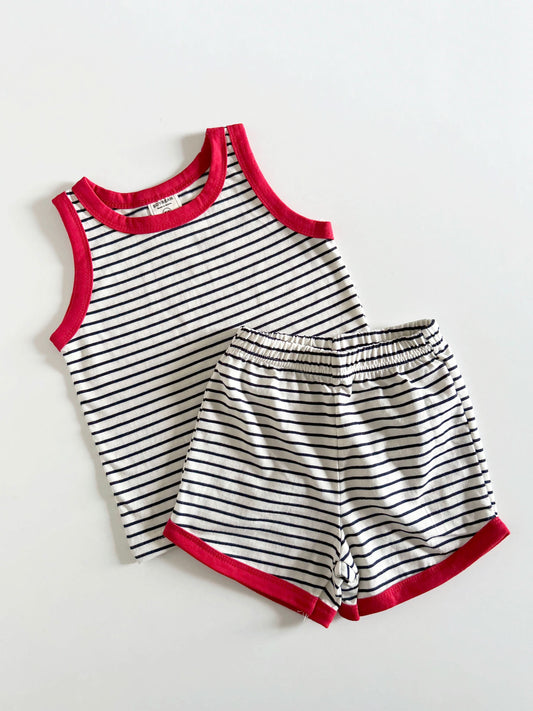 Kids Soy Summer Stripe Sleeveless Top & Shorts Set (1-7y) - 4 Colors