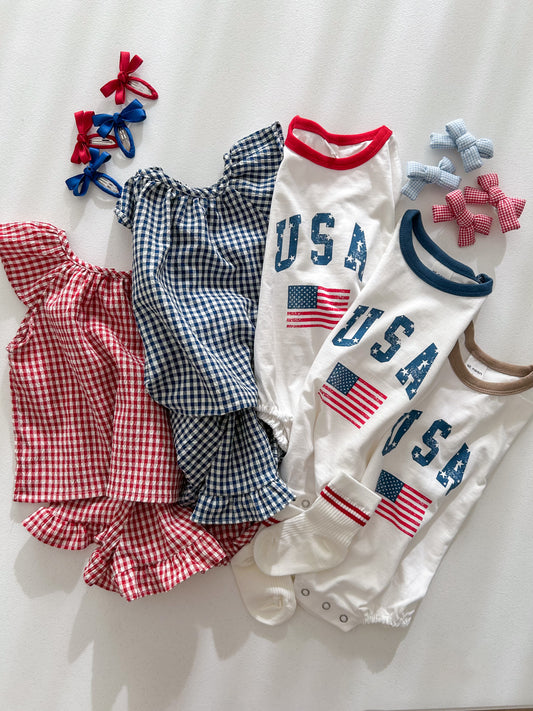 [At Noon Original Design] Kids Vintage Print USA Ringer T-Shirt and Shorts Set (8m-7y) - 3 Colors