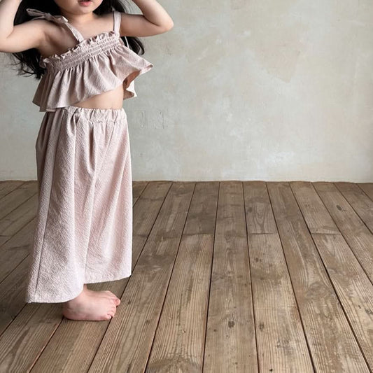 Baby Bella Tie Shoulder Ruffle Cropped Top and Wide Leg Pants Set (1-5y) - 2 Colors