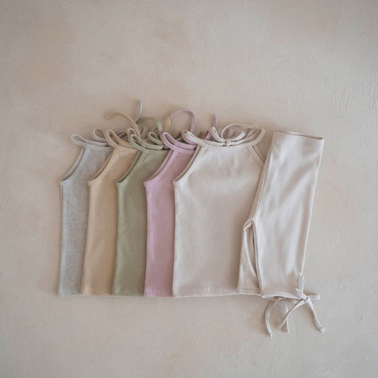 Toddler Tie-Back Ribbed Halter Tank Top and Shorts Set (6m-6y) - 5 Colors