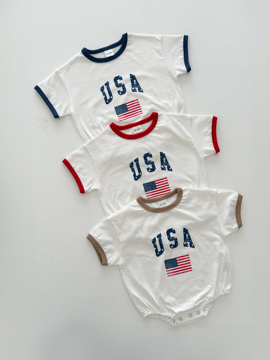 [At Noon Original Design] Baby Vintage Print USA Ringer T-shirt Romper (3-18m) - 3 Colors