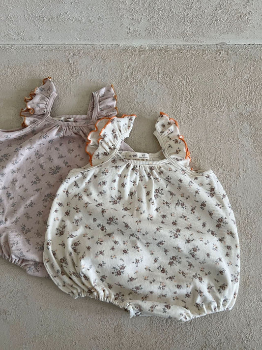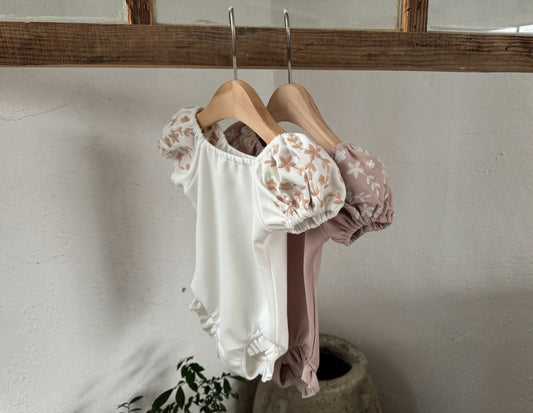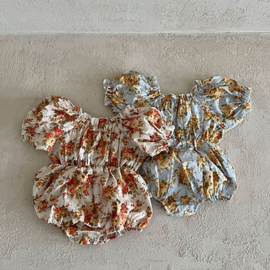 Baby Lala Floral Short Puff Sleeve Romper (0-18m) - 2 Colors