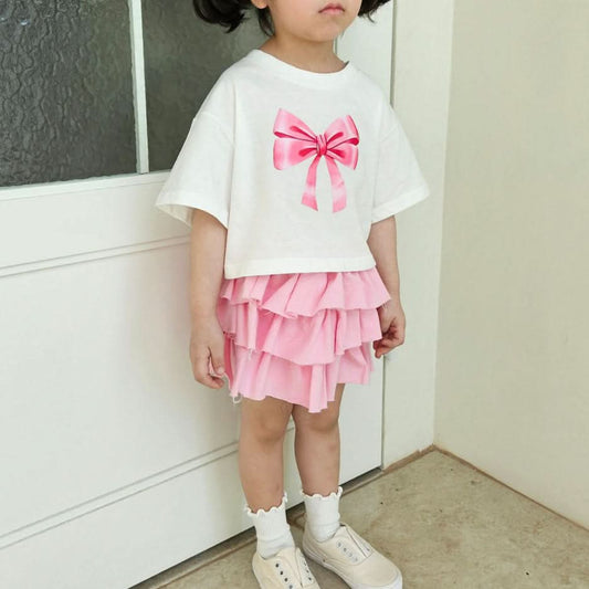 Toddler Bow Print Short Sleeve Cropped Top (1-7y)- 2 Colors