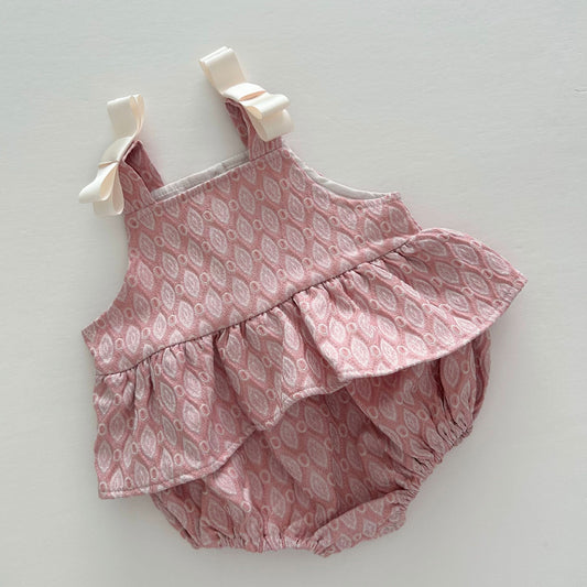 Baby Ann Shoulder Bow Jacquard Ruffle Romper (6-18m) - 2 Colors