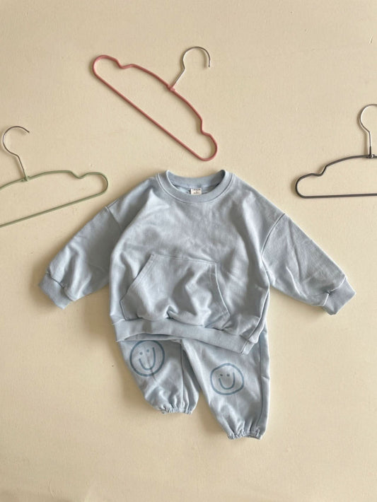Baby Kangaroo Pocket Sweatshirt and Smile Jogger Pants Set (6-24m)- 2 Colors