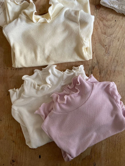 Baby Ann Lettuce-Edge Ribbed Long Sleeve Mock-neck Top (3-18m) - 3 Colors