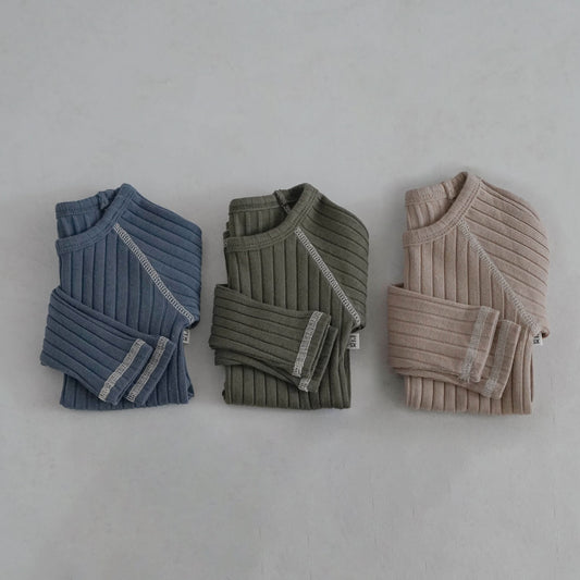 Toddler Stitch Detail Ribbed Top and Pants Set (1-6y)- Blue