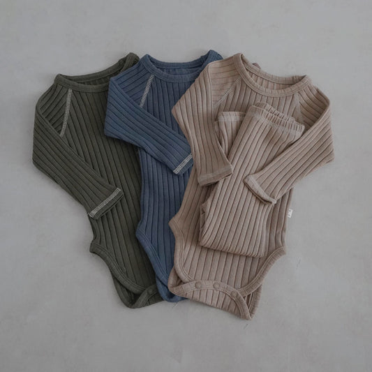 Baby Stitch Detail Ribbed Bodysuit and Pants Set (3-12m)- Olive