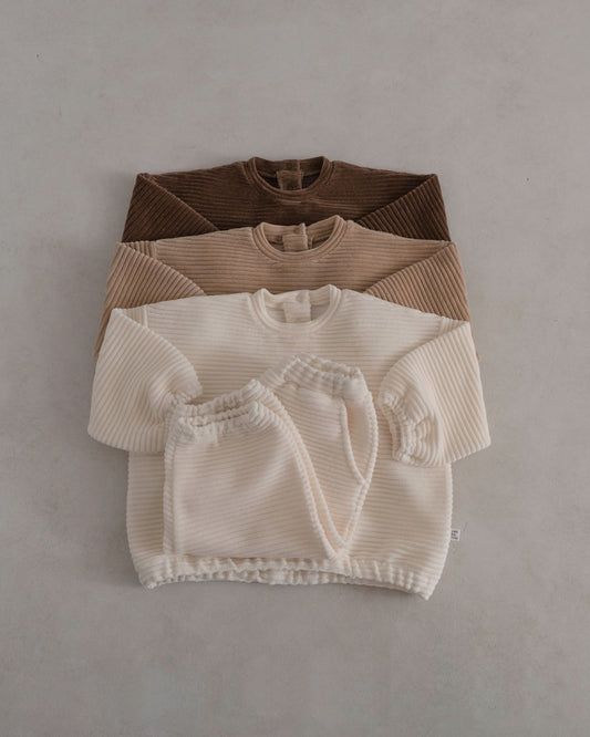 Baby Toddler Velour Rib Sweatshirt and Jogger Pants Set (3m-6y)- Ivory