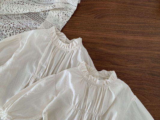 Kids Floral Jacquard Puff Sleeve Top & Pants Set (2-6y) - Beige