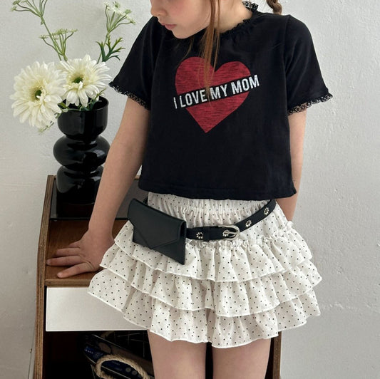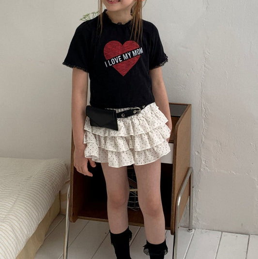Kids SS25 Lace Detail 'I LOVE MY MOM' in Heart Short Sleeve Cropped Top (2-7y) - 2 Colors