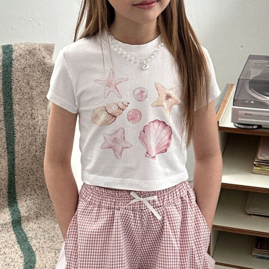 Kids SS25 Shell Print Short Sleeve Cropped Top (2-9y) - 2 Colors
