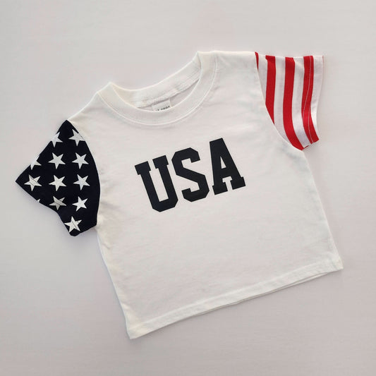 [At Noon Exclusive] Toddler Original USA Print Stars and Stripes Sleeve T-Shirt and Shorts Set(1-5y)