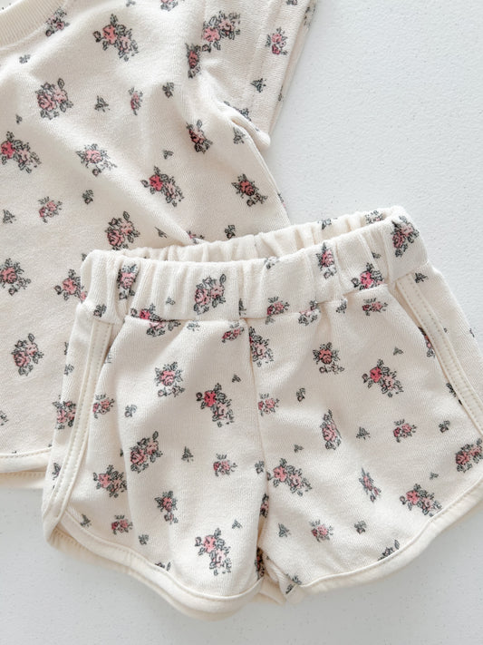 Kids SS25 Terry Cloth Floral Short Sleeve Top and Shorts Set (1-7y) - Ivory