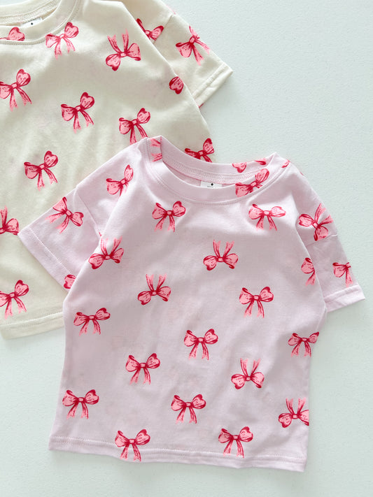 Kids SS25 Bow Print Short Sleeve Top (2-7y) - 2 Colors